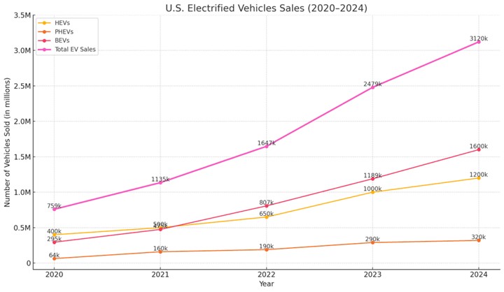 This trend lines up with national sales data. According to Cox Automotive, EV sales in the U.S. have steadily grown over the past five years: