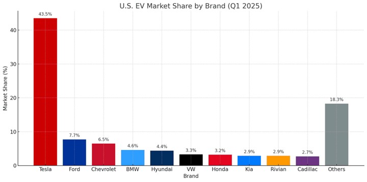 U.S. EV Market Share by Brand for Q1 2025: